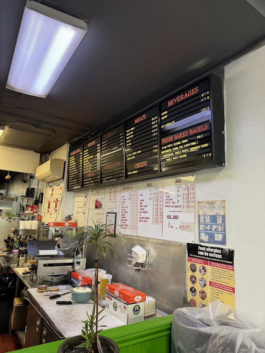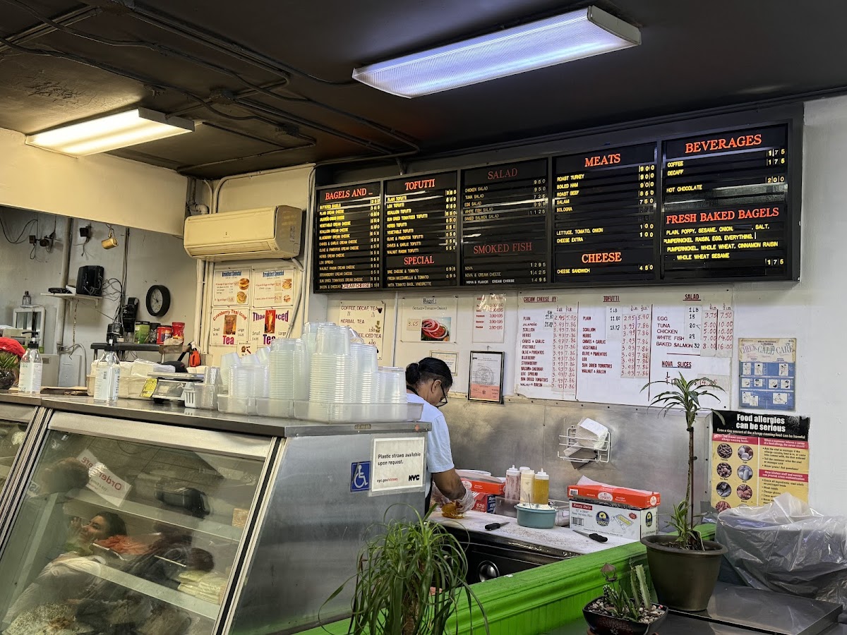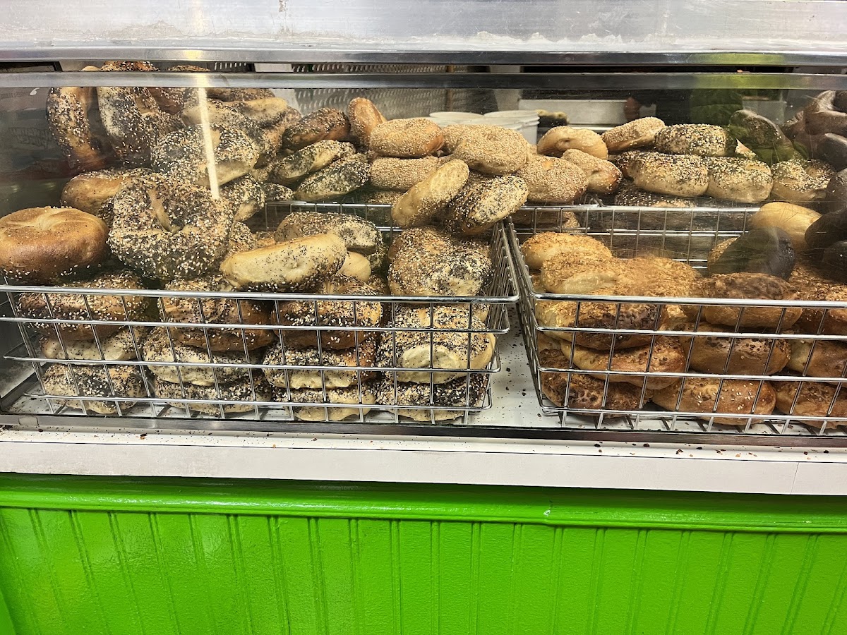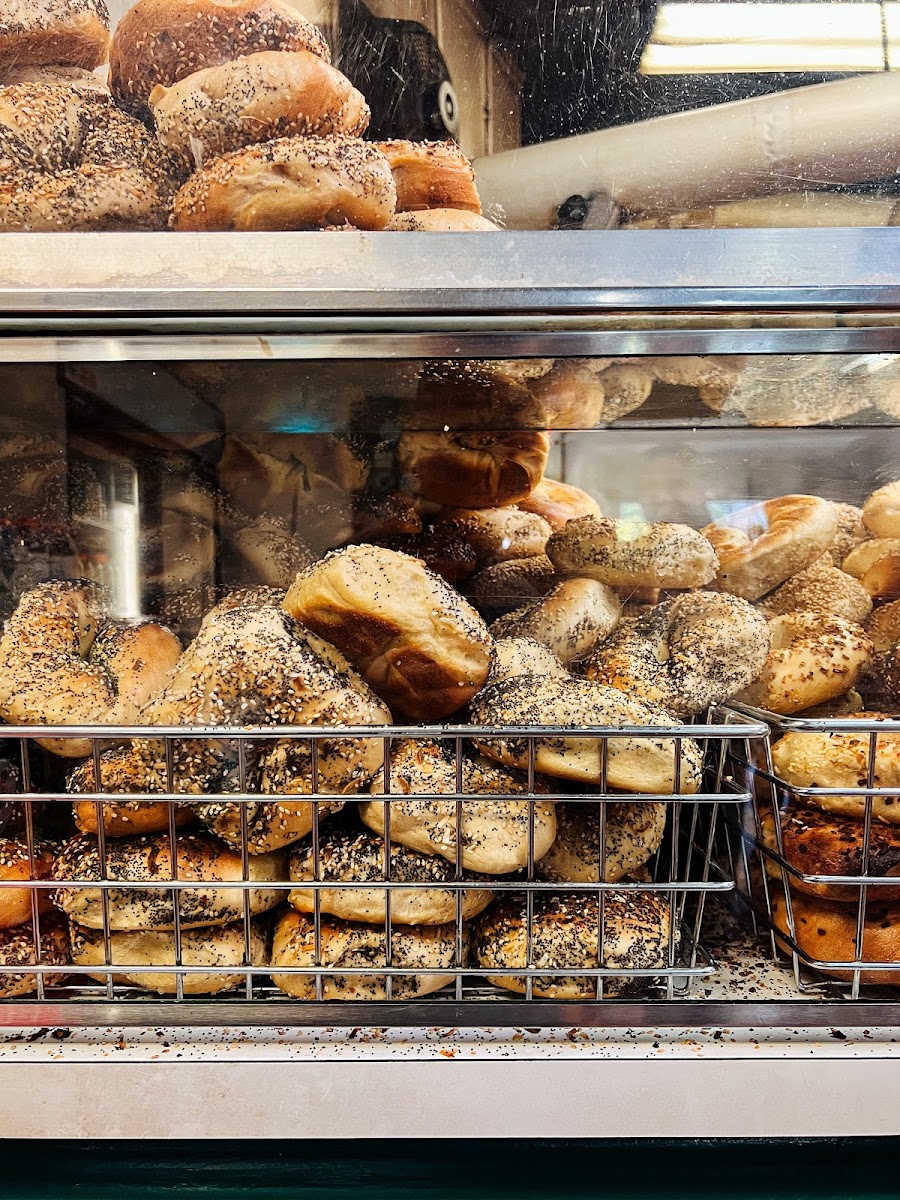 Delicious bagels, most of them cost 5.50, and they charge an extra 10 cents to toast the bread. The place is always packed on Sunday mornings. The staff is friendly. They don’t accept cards. Go for it!